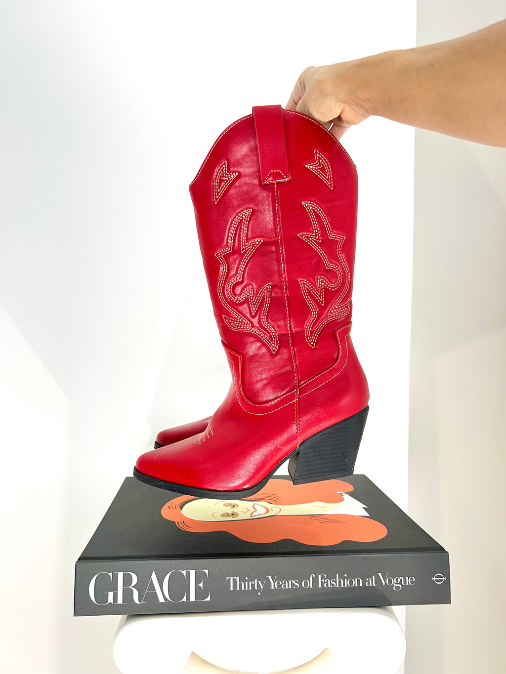 RED EMBROIDERED COWBOY BOOTS - SIZE 6