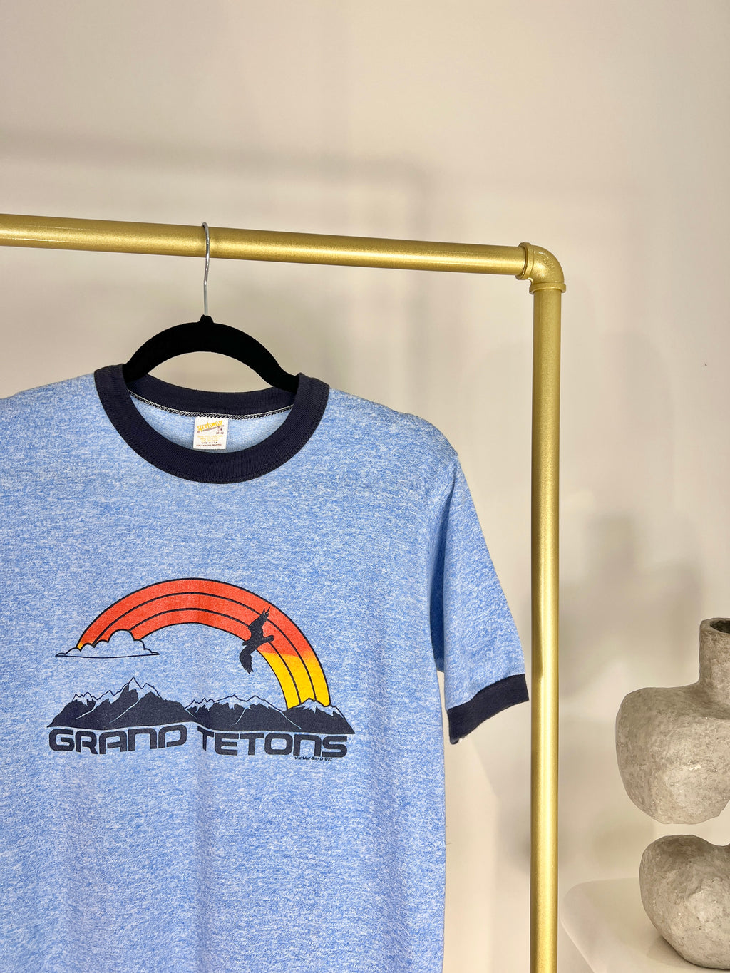 VINTAGE 1982 GRAND TETONS BLUE RINGER TEE