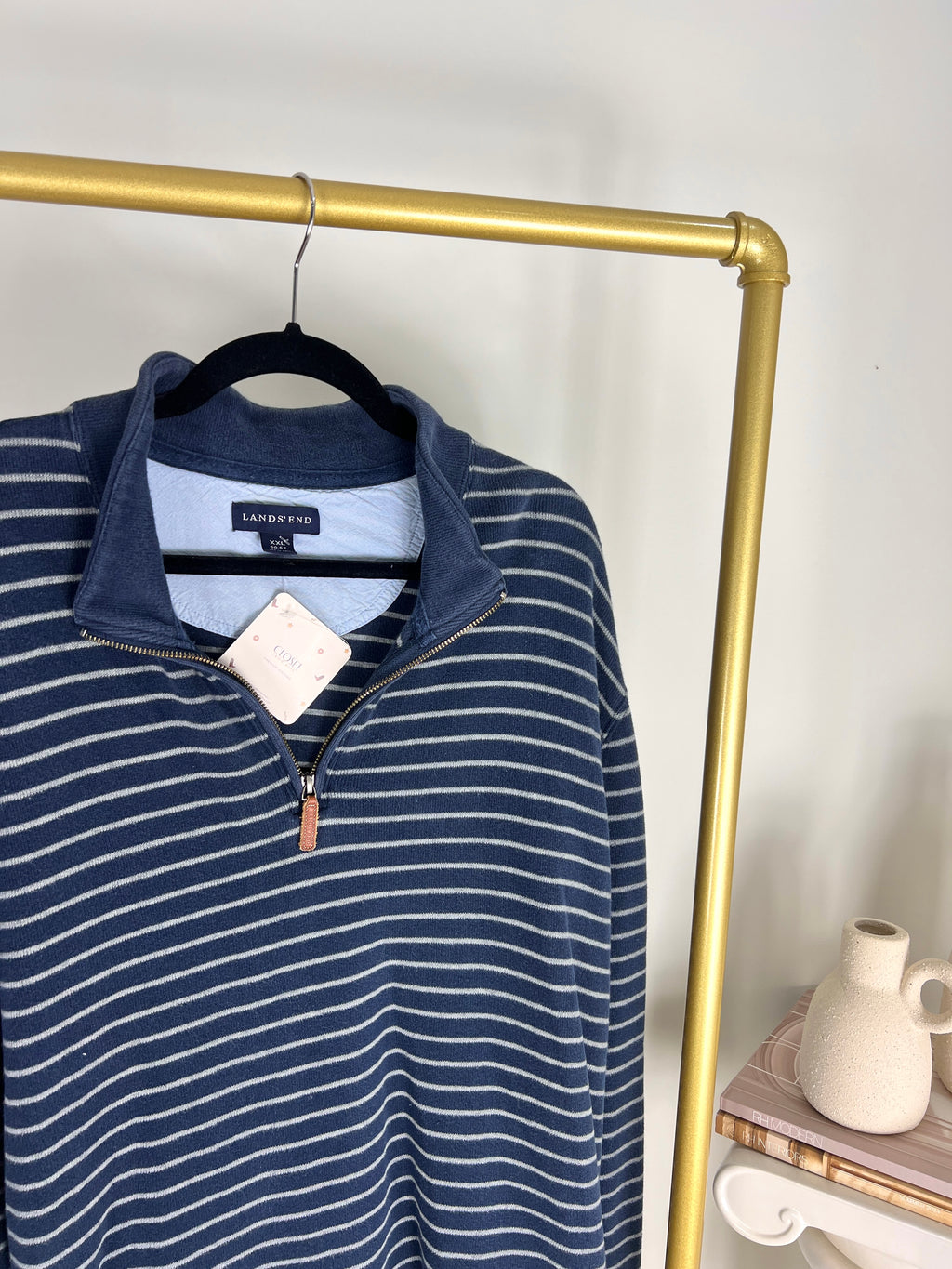 VINTAGE NAVY STRIPED QUARTER ZIP SWEATSHIRT
