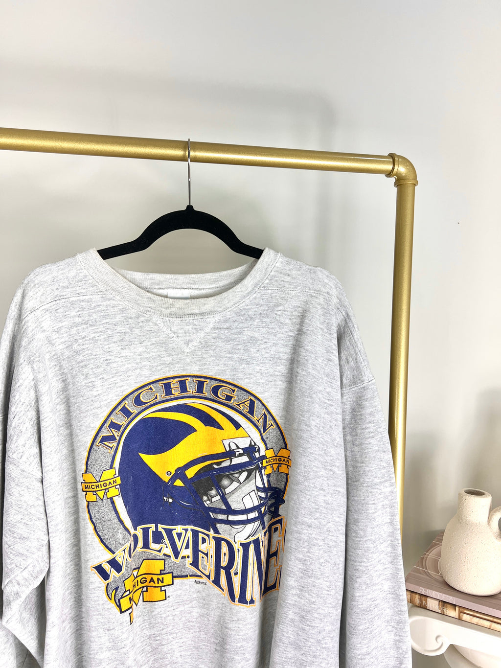 VINTAGE LIGHT GREY UNIVERSITY OF MICHIGAN WOLVERINES CREWNECK