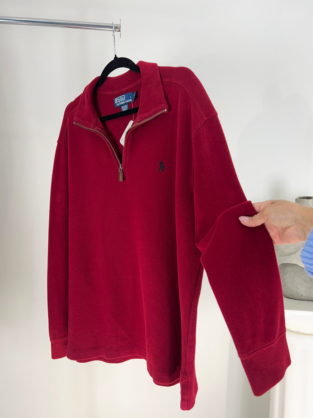 VINTAGE RALPH LAUREN RED QUARTER ZIP RIBBED SWEATER