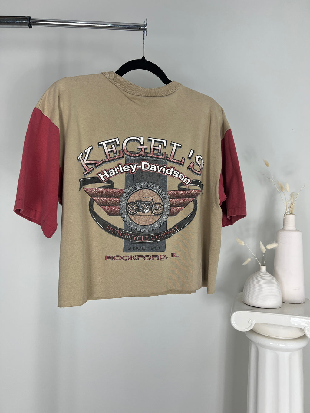 VINTAGE TAN COLORBLOCK CROPPED HARLEY DAVIDSON HENLEY T-SHIRT