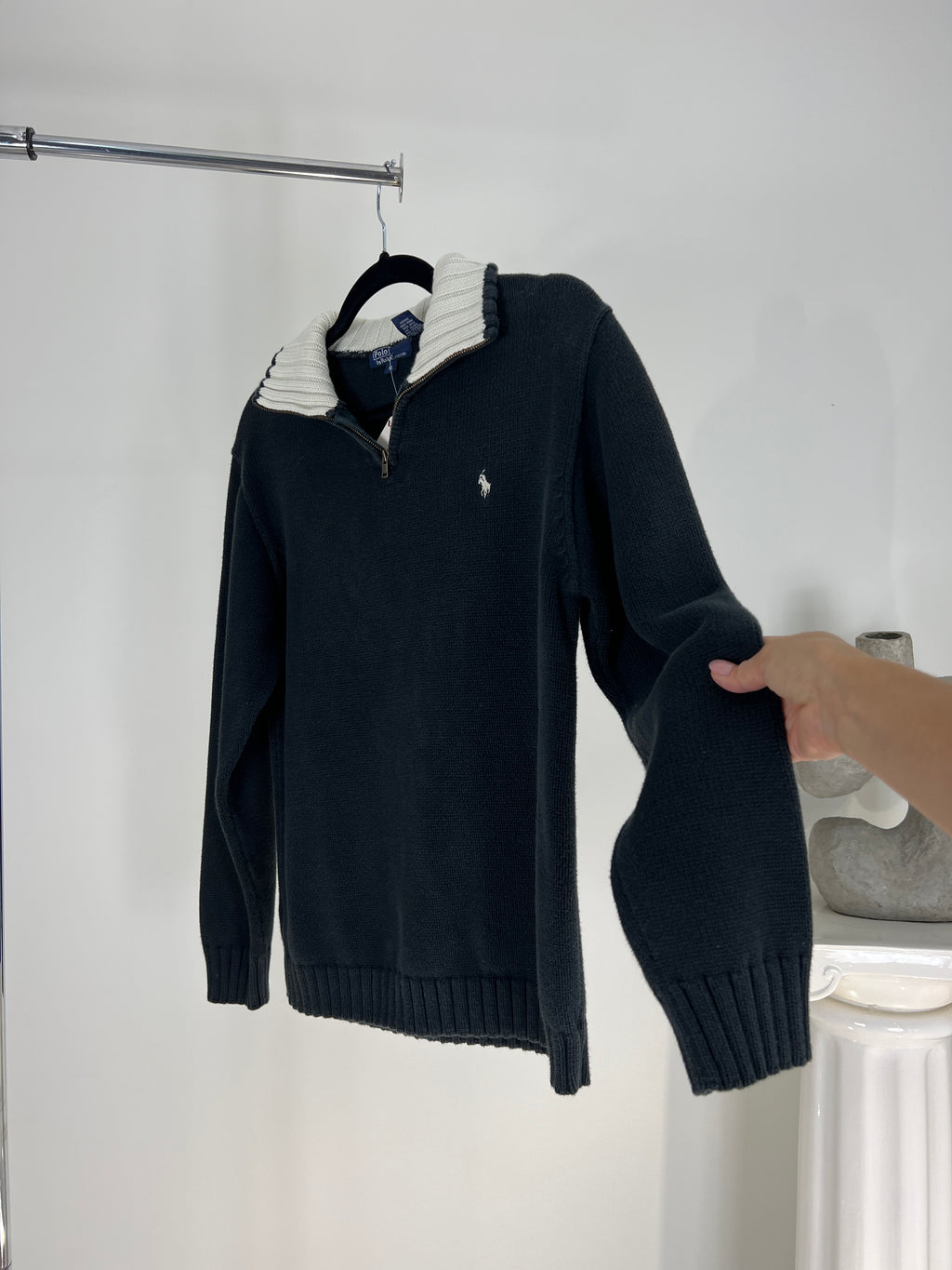 VINTAGE RALPH LAUREN BLACK QUARTER ZIP SWEATER