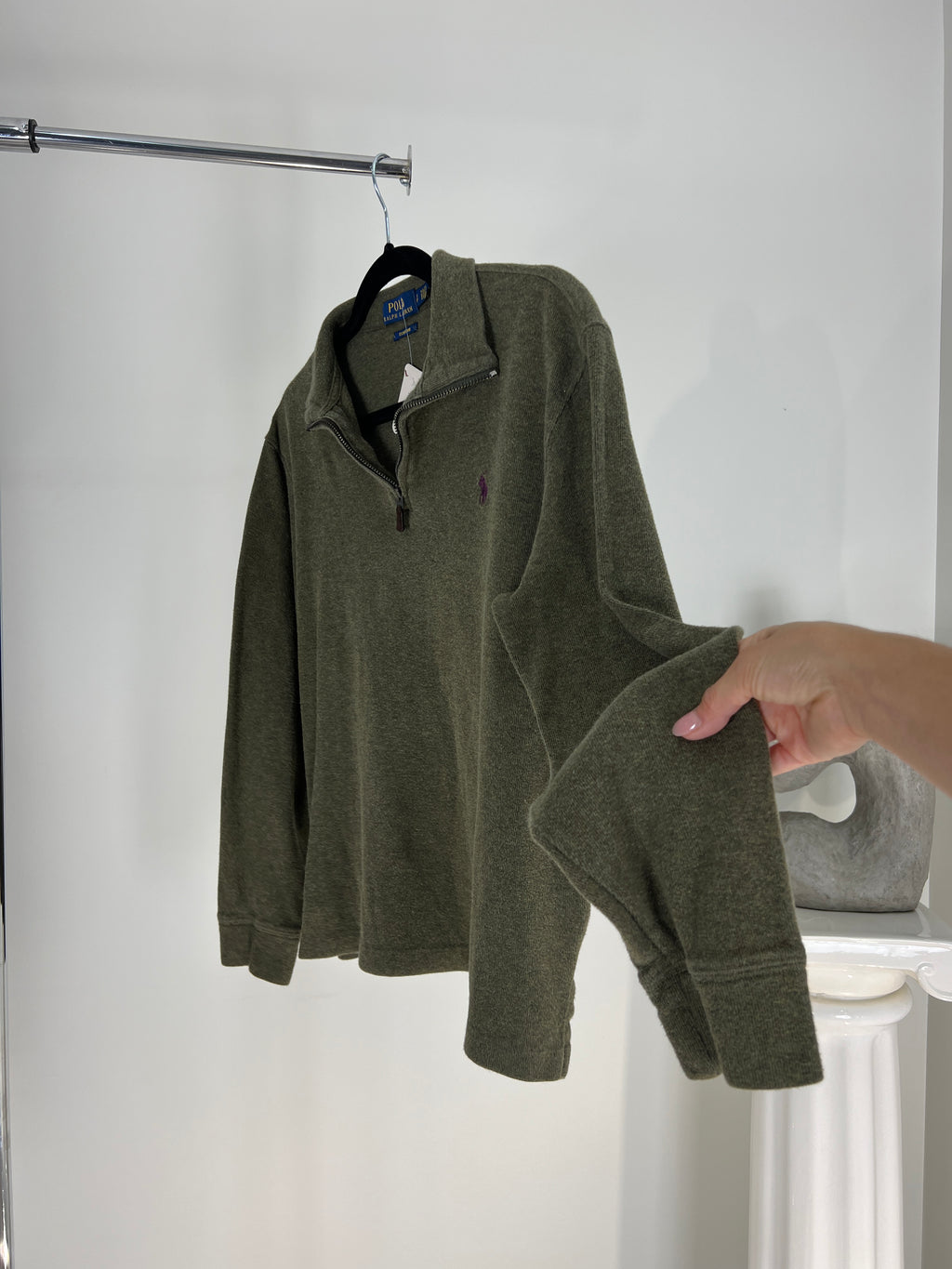 VINTAGE RALPH LAUREN OLIVE GREEN QUARTER ZIP SWEATER