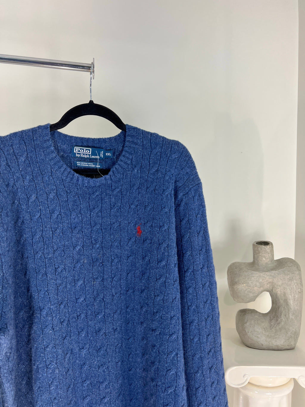 VINTAGE RALPH LAUREN BLUE CABLE KNIT WOOL SWEATER