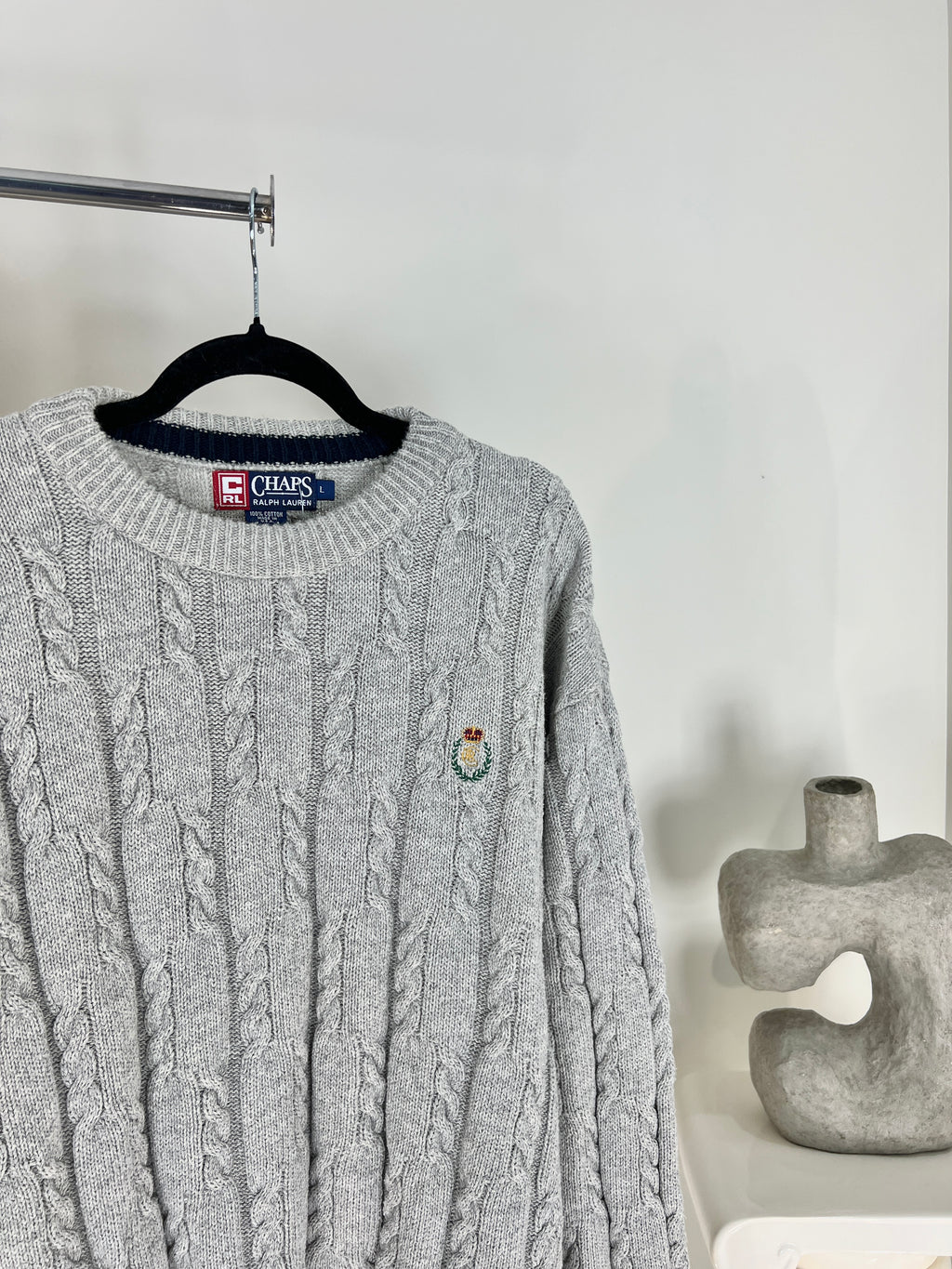 VINTAGE RALPH LAUREN CHAPS GREY CABLE KNIT SWEATER
