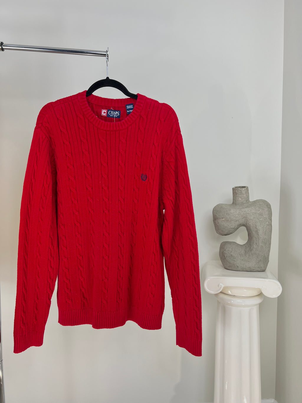 VINTAGE RALPH LAUREN CHAPS RED CABLE KNIT SWEATER