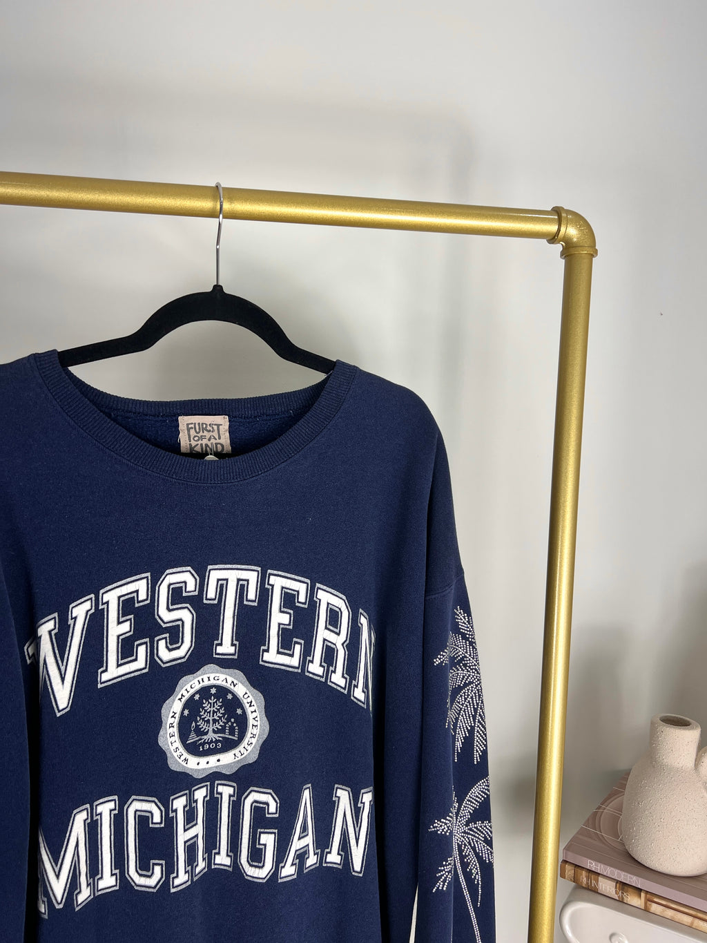 VINTAGE NAVY WESTERN MICHIGAN UNIVERSITY CREWNECK