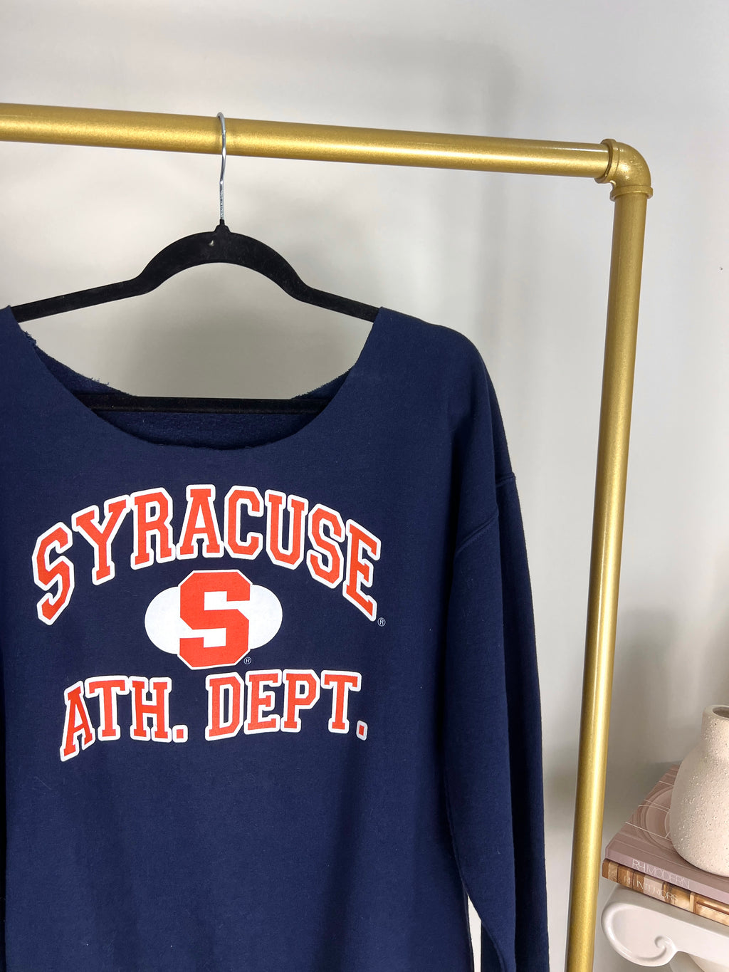 VINTAGE OFF THE SHOULDER SYRACUSE UNIVERSITY NAVY SWEATSHIRT